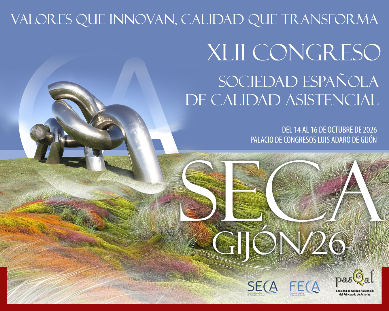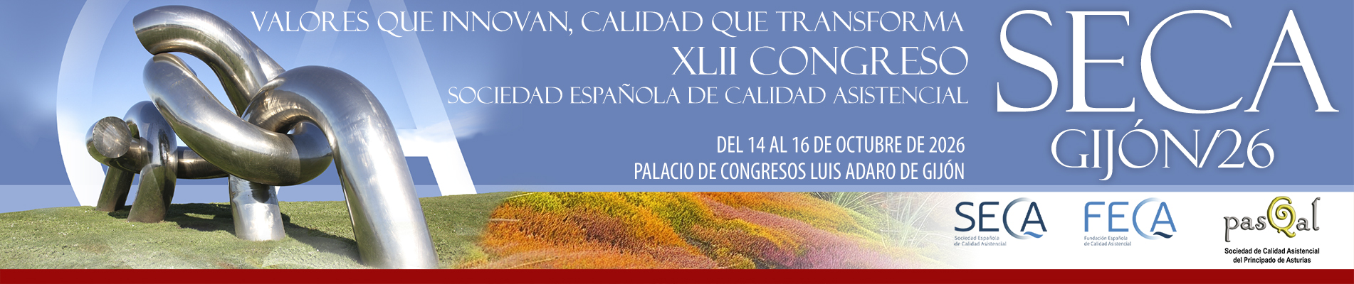 Bienvenidos al XLII Congreso de la Sociedad Española de Calidad Asistencial (SECA) y al XXVI Congreso de la Sociedad de Calidad Asistencial del Principado de Asturias (PASQAL), que se celebrará en Gijón del 14 al 16 de octubre de 2026.